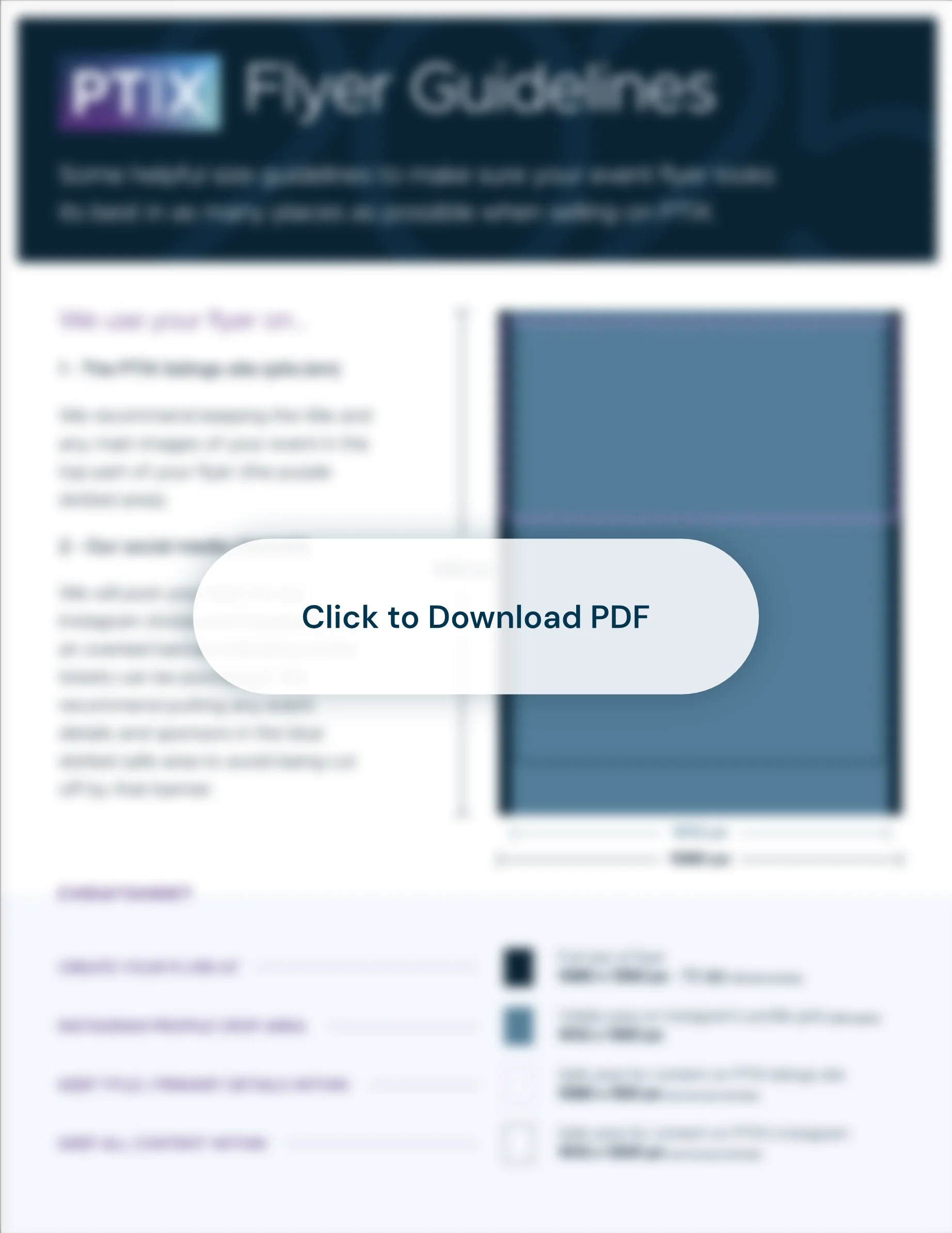 A helpful guide to how your flyer will display on PTIX and our social media. We recommend using these dimensions and taking note of these suggestions.